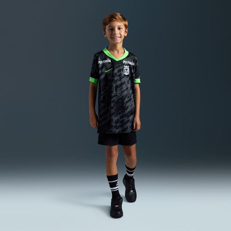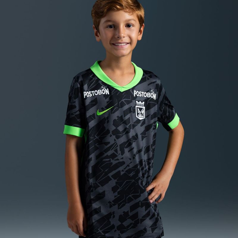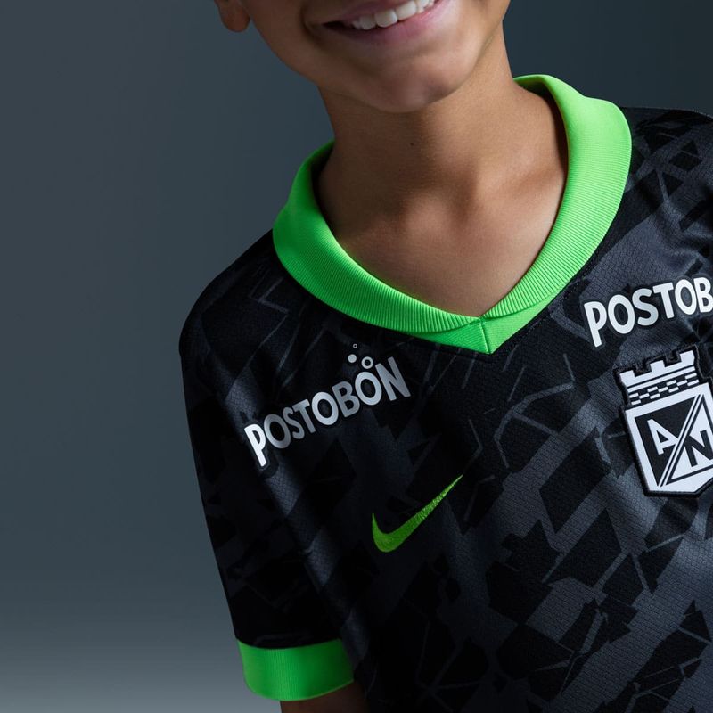 La tercera equipación 2026 de Atlético Nacional se inspira en la camiseta visitante de 2016, el año en que el Verdolaga conquistó el continente. Sus tonos de verde vibrante evocan los colores de advertencia presentes en la naturaleza: señales de alerta, velocidad y peligro que no se pueden ignorar.