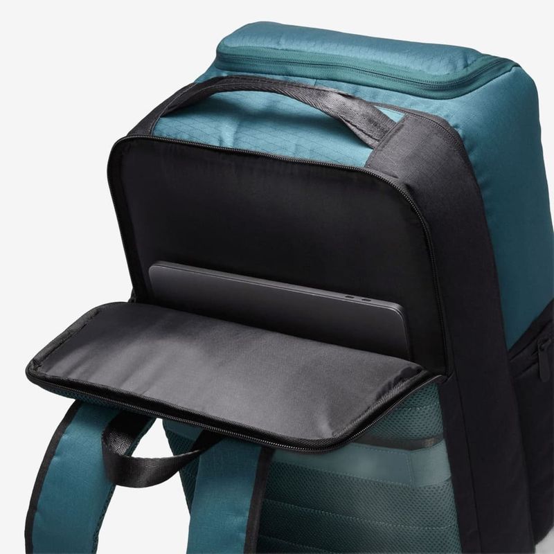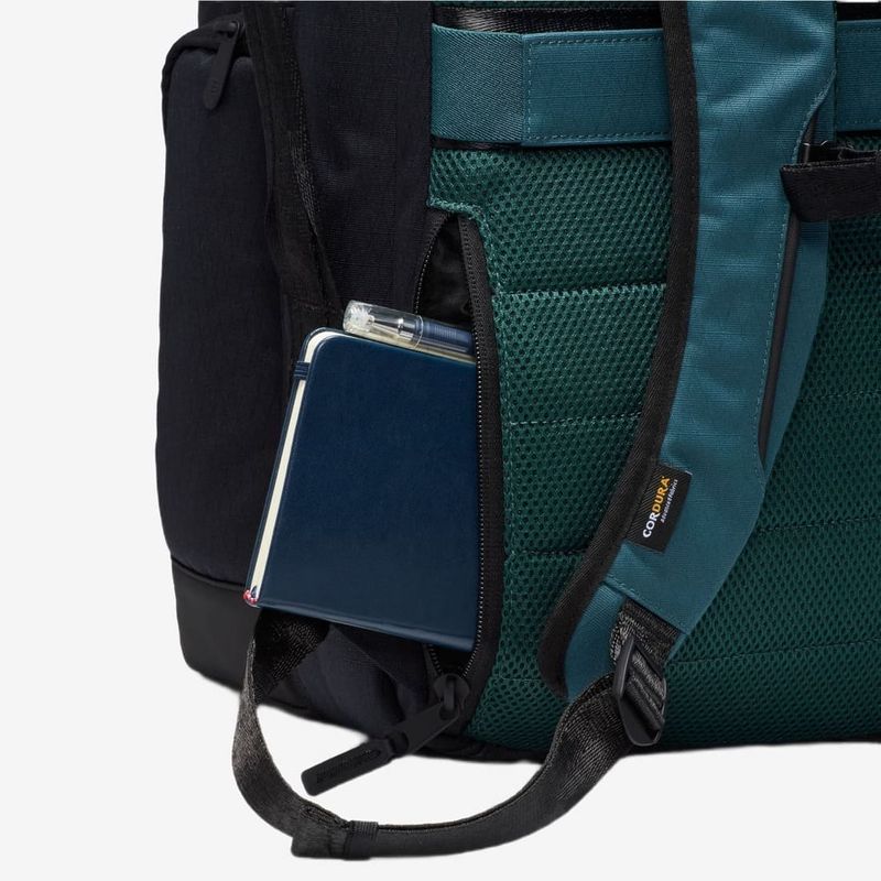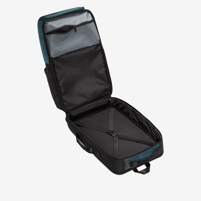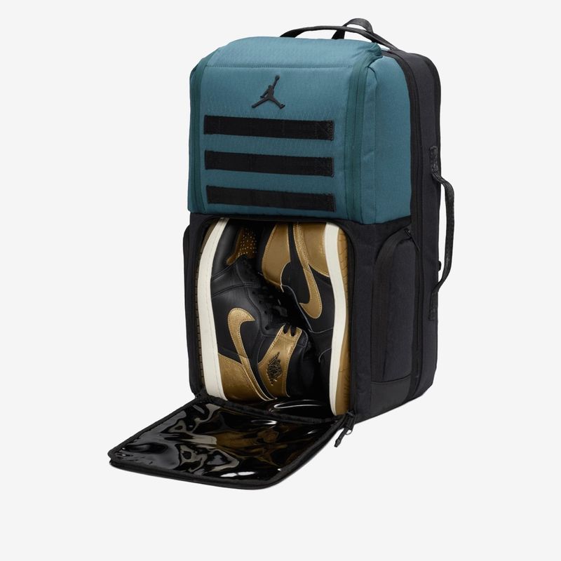 Esta maleta es ideal para los amantes de los tenis. Está confeccionada con una tela ripstop CORDURA® duradera, resistente a abrasiones, roturas y roces, y cuenta con un acabado repelente al agua que ayuda a mantener tus pertenencias seguras y secas. Está diseñada para acompañarte durante todo el día (e incluso durante la noche), con un compartimento principal lo suficientemente espacioso para tus recorridos diarios. El compartimento en la parte posterior tiene una funda acolchada para proteger tu laptop o tableta. En el interior tiene correas elásticas, así como un bolsillo de vinilo transparente tipo neceser para mantener las cosas en su lugar. En la parte delantera hay un gran bolsillo que contiene otro bolsillo más pequeño para organizar las cosas, así como un espacio para mantener tus tenis favoritos en perfectas condiciones.