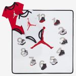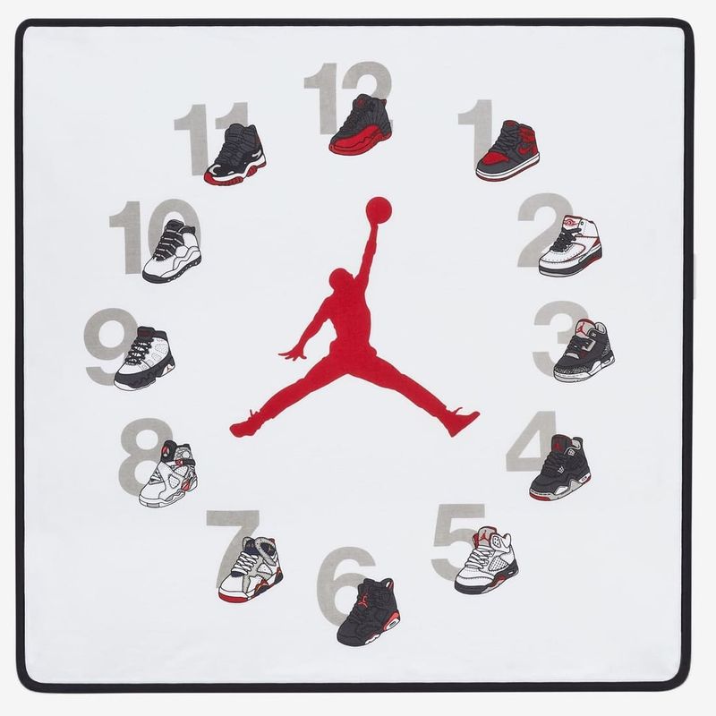 Celebra su primer año con el conjunto Jordan Milestone. La manta presenta 12 calzados retro, una para cada mes, para que puedas tomar fotos de tu futuro jugador a medida que crece.