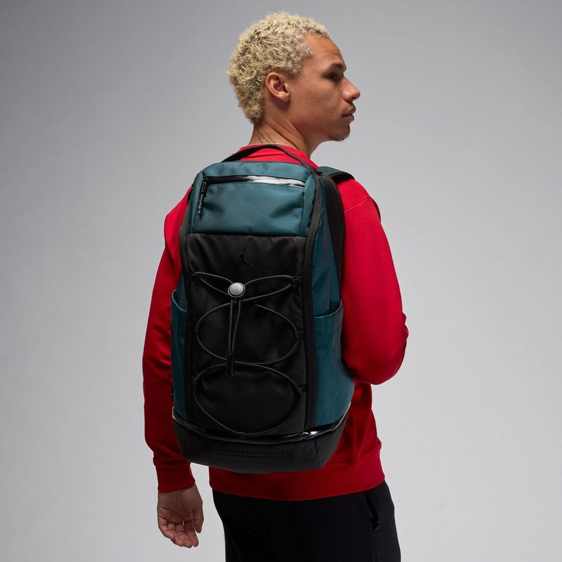 Lleva tus cosas con estilo ADN en esta espaciosa maleta Jordan. El amplio compartimento principal con cierre es perfecto para libros, una muda de ropa o cualquier otra cosa que necesites. El compartimento con cierre de la parte posterior está acolchado para guardar el portátil o la tablet de forma segura. Utiliza los bolsillos laterales para botellas y el cordón elástico con cordones de la parte delantera para asegurar otros objetos. Las correas acolchadas regulables proporcionan comodidad. Lo que realmente hace destacar a esta maleta son los bolsillos para organizarse y el compartimento ventilado para los tenis en la parte inferior.