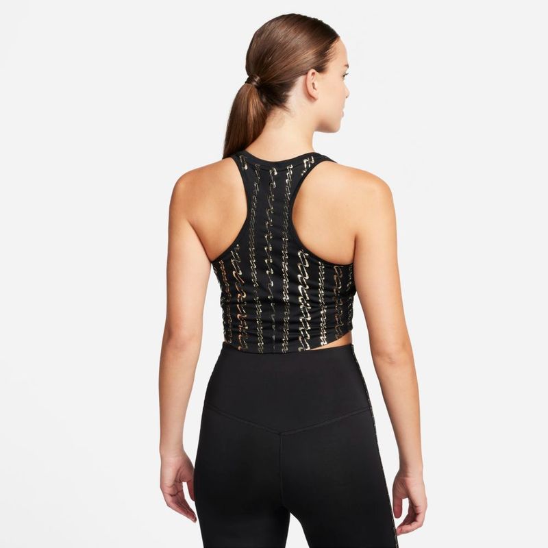 Apta para entrenar o relajarse, esta camiseta de tirantes cropped y ceñida está lista para lo que sea. Su tela suave absorbe el sudor para mantener la transpirabilidad y comodidad durante todo el entrenamiento y el resto del día. Además, el estampado metálico añade un toque de estilo a un look clásico.