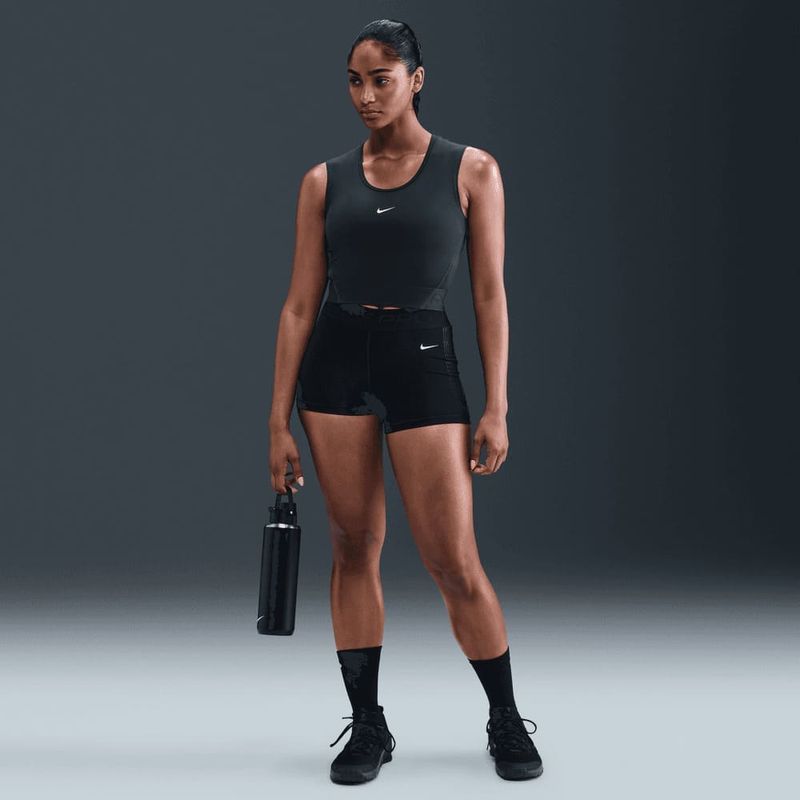 Persigue tus objetivos. Gracias a su diseño con más cobertura en los hombros, esta camiseta de tirantes te permite hacer sentadillas con barra de pesas con total comodidad. Su tela ligera y elástica absorbe el sudor para mantenerte seca y fresca cuando el entrenamiento se intensifica.