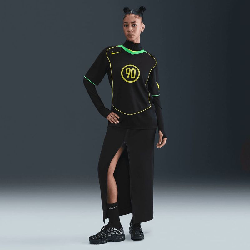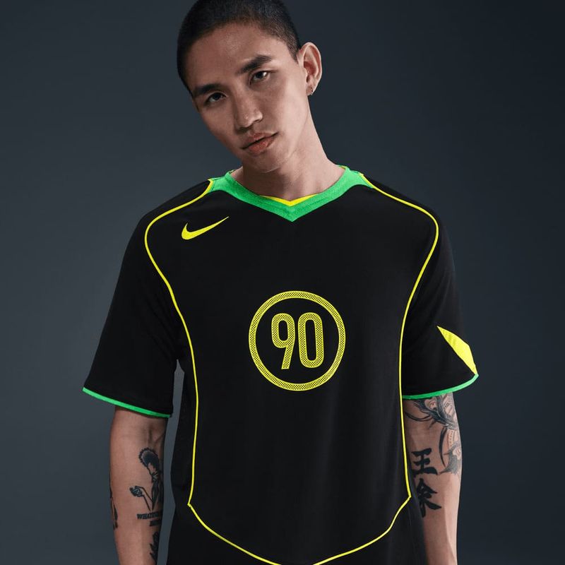 Este jersey de fútbol Dri-FIT rinde homenaje a la herencia Total 90 de Nike. Su tela transpirable absorbente de sudor te ayuda a mantener la frescura y comodidad, a la vez que el diseño aporta un toque atrevido de mediados de los 2000 a tu estilo dentro y fuera del campo.